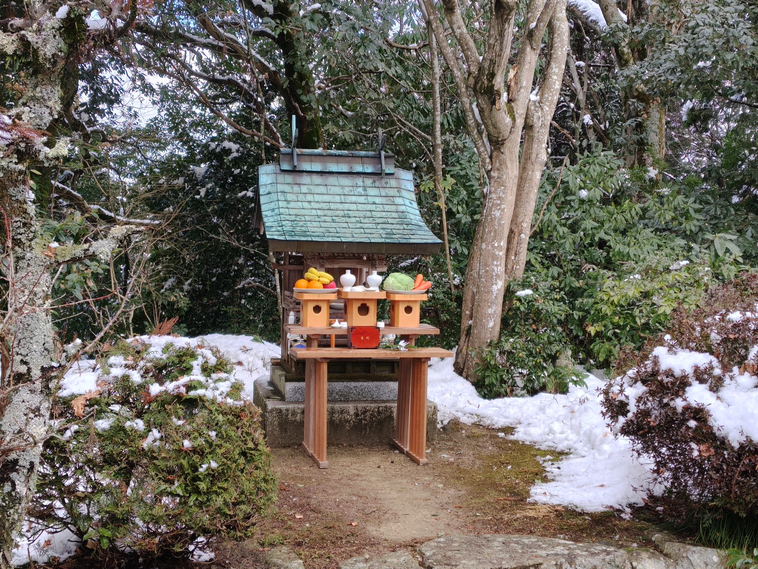 1月下旬に降り積もった雪が境内にはどっさり残っています。境内の庭園内には稲荷神社が祀られ、毎年2月最初の午の日に初午祭を斎行しています。今年は2月1日が午の日にあたるので、月次祭と初午祭を斎行しました。雪に囲まれてのお祭りとなりましたが、雪は「豊作」の兆しでもあり、縁起の良い初午祭となりました。